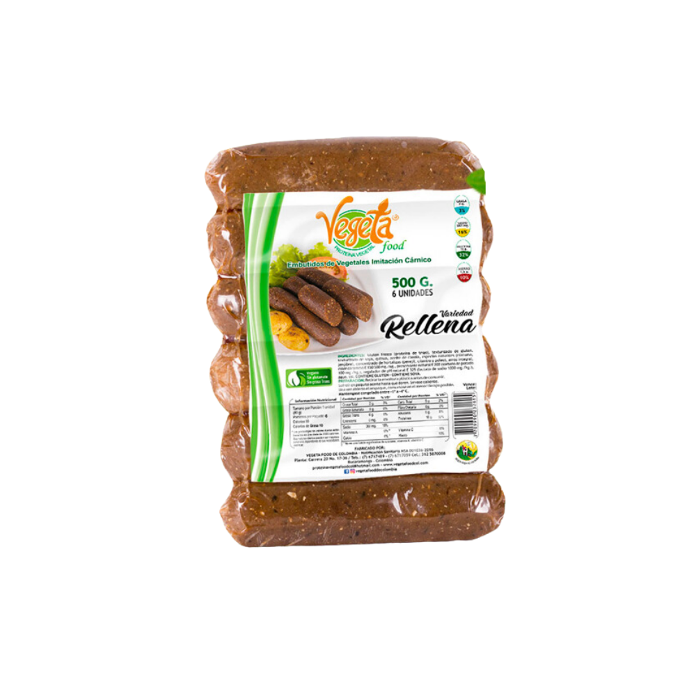 Una rellena vegana elaborada con soya, cereales y leguminosas, con un sabor tradicional inspirado en la cocina típica. Su textura suave y especiada la hace ideal para acompañar tus comidas favoritas.